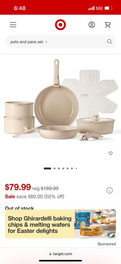 CAROTE 15pcs Ceramic Cookware Set, Pots and Pans Set, Non Stick RV Cookware Set with Detachable Handle$55Hacienda Heights, CA