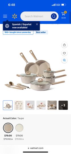 Carote Ceramic Nonstick Pots and Pans Set, 13 Pieces Non-Toxic Kitchen Cookware Sets, Taupe$55Hacienda Heights, CA