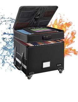 Fireproof Document Box with Lock,2-Layer File Box with Wheels,Collapsible File Storage Organizer with Pockets,Large Portable Home Filing Cabinet for H$15El Monte, CA