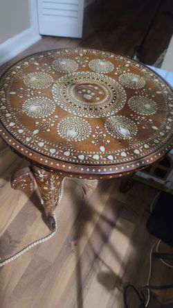 19th c. Anglo Indian Mughal Teak Bone Inlaid Round Side Table$100Warren, MI