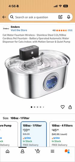 Brand new Cat Water Fountain Wireless - Stainless Steel 3.2L/108oz Cordless Pet Fountain - Battery Operated Automatic Water Dispenser for Cats Indoor,$20Queens, NY