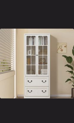 New in Box Glass Double-Door Bookcase with Large Drawers$150Covina, CA