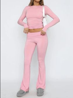 Women Solid Long Sleeve Crop Tee And Flare Leg Skinny Pants Longer wear Set$27Westview, FL