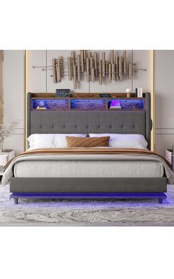 Jocisland 53.1" H King Size Bed Frame, Built-in Bookcase & RGB LED Headboard, Velvet Upholstered Wingback Design, No Box Spring Needed, Dark Grey$375Brooklyn, NY