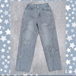Y2K Distressed Blue Star Straight Leg Pants Size S