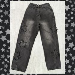 Y2K Distressed Black Star Straight Leg Pants Size S$17Dallas, TX