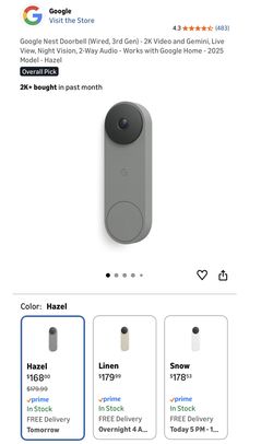 FACTORY SEALED 2025 Model: Google Nest Doorbell (Wired, 3rd Gen) – Hazel$100Rancho Cordova, CA