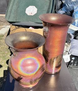 2 Large Coral Iridescent Glass Vases$25Grove City, OH