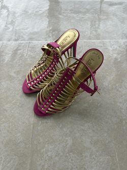 Ralph Lauren Skyla Gold Strap Pink Heels Sz 7 b New $40Kenosha, WI