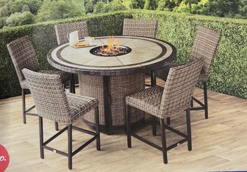 Agio Anderson 7-Piece High Dining Patio Set w/ Fire Table – Like New $1000$1,000Van Alstyne, TX