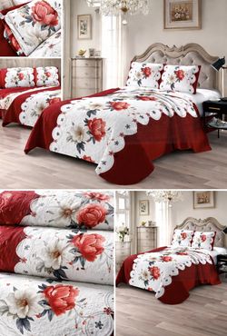 Elegant Red & White Floral Queen Bedspread Set – Beautiful & Stylish$70White Oak, MD