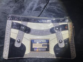Y2K Vintage Guess Shoulder Bag – Croc Embossed Patchwork Purse Black Gray Ivory with Rhinestone Logo Plate – 2000s Baguette Handbag 11x7x3$45Sarasota, FL