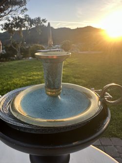 small brass blue metal round candle holder with handle taper approx 3.5"$20Pacifica, CA