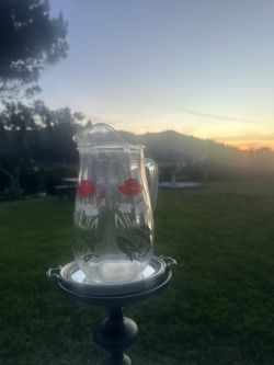 Vintage Charming Clear Red White Glass Pitcher with Floral Pattern$35Pacifica, CA