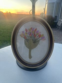 Vintage Charming Handmade Crewel Embroidery Floral Art Piece Framed Oval Frame$36Pacifica, CA