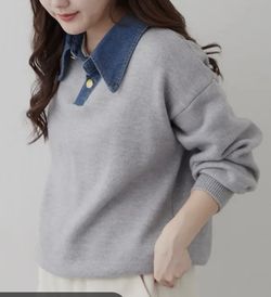 Elegant Women’s Knit Sweater with Denim Collar (Layered Look) -$40Marion, OH