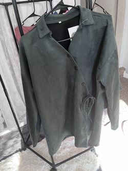 Stylish 2-Piece Faux Suede Set - Olive Green Wrap Top & Pants$50Marion, OH