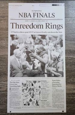 LOS ANGELES LAKERS CHAMPIONSHIP NBA LOS ANGELES TIMES NEWSPAPER PRINTING PLATE KOBE BRYANT, SHAQ$100Las Vegas, NV