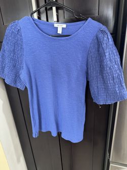 Nine West Blue Ribbed Puff Sleeve Top Size Medium$15Union, NJ