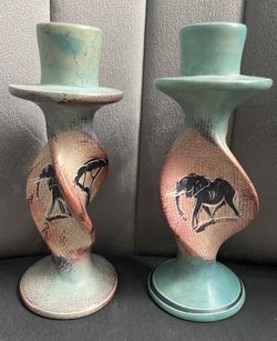 Set of 2 Twisted Candlestick Holders with African Animal Designs$5Queens, NY