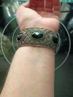 Silver Tone Vintage Gothic Marcasite Style Cuff Bracelet $20Lawndale, CA