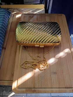 Gold Tone Metal Ribbed Clutch Hand Bag.$99Lawndale, CA