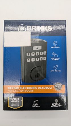 Brinks (4390-122) Electronics Keypad Single Cylinder Deadbolt With Pro Guard, Matte Black Finish $40North Miami, FL