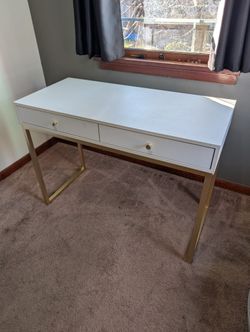 SoldCLAIMED: White & Gold Writing Desk, 2 Drawers$0Seattle, WA