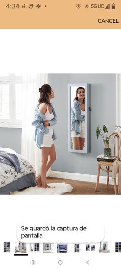 Mirror Jewelry Cabinet, 47.2-Inch Tall Lockable Wall or Door Mounted Jewelry Armoire Organizer with Mirror, 2 Drawers, 3.9 x 14.6 x 47.2 Inches, Gray $60Santa Ana, CA