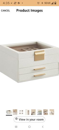Jewelry Box Organizer with Glass Lid, 3-Layer Jewelry Storage, with 2 Drawers, Modern Style, 8 x 9.1 x 5.3 Inches, Cloud White and Gold Color UJBC239W$25Santa Ana, CA
