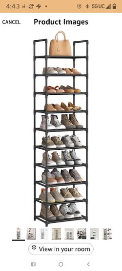 Shoe Rack, 10-Tier Shoe Shelf, Shoe Storage Organizer, 11 x 17.7 x 68 Inches, Metal Frame, Non-Woven Fabric Shelves, for Entryway, Bedroom, Black $20Santa Ana, CA