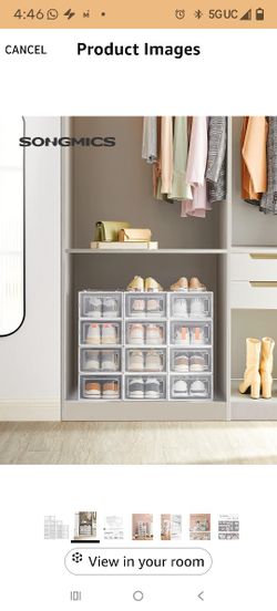 Shoe Boxes, Pack of 12 Shoe Storage Organizers, Stackable Clear Plastic Boxes for Closet, Sneakers, 13.1 x 9.1 x 5.6 Inches, Transparent and White ULS$25Santa Ana, CA