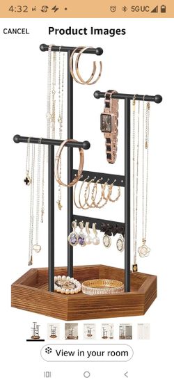 Jewelry Holder, Jewelry Organizer, 3 Tiers and 1 Tray, Jewelry Display Stand with Metal Frame, Necklace Earring Bracelet Holder, for Rings, Ink Black $15Santa Ana, CA