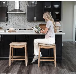 Brand new Set of 2 Maven Line Adrien Saddle and Bar Stool in Natural Finish Modern Bar chairs $95Las Vegas, NV