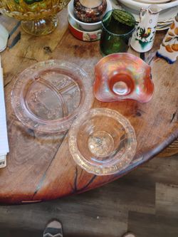 A Pinkish Pearl Metallic Bowl With Light Pink Bow With A Light Pink Platter$70Mineral Wells, TX