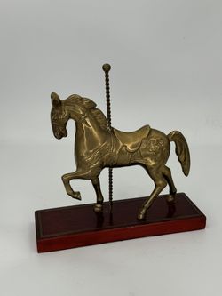 Vintage Solid Brass Carousel Horse Figurine on Wood Base$20Corral De Tie, CA