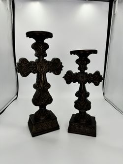 Ornate Wooden Cross Candle Holders – Religious Home Decor$30Corral De Tie, CA