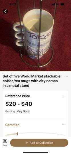 Set Of four stackable Coffee/Tea Mugs With Cities Names In A Metal Stand.$20Winnsboro, LA