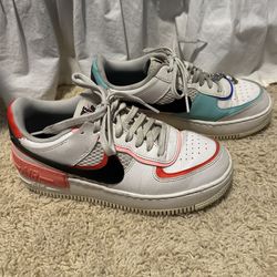 Womens 7.5 Nike Air Force 1 Shadow Low White/Multi-Color blue and pink$40Sheffield Lake, OH