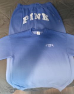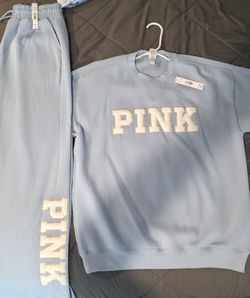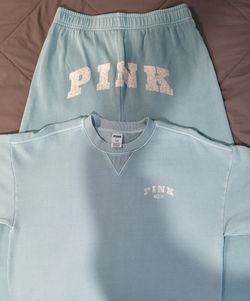 Based on the image provided, this is a Victoria's Secret PINK light blue (sometimes described as seafoam or mint green) crewneck sweatshirt. It featur$80Downers Grove, IL