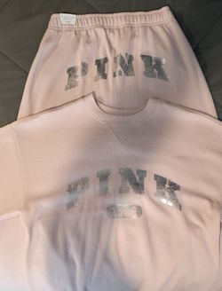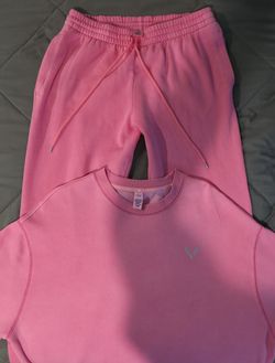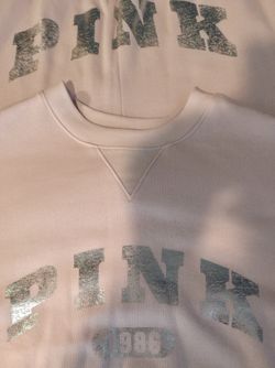 Based on the visual details, this is the Victoria's Secret Angel Essentials Effortless Fleece Crewneck Sweatshirt in the color Washed Hollywood Pink$80Downers Grove, IL