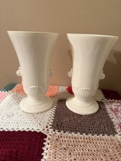 Set Of 2 Shell Vitrock Milk Glass Vases$25Madison, NC