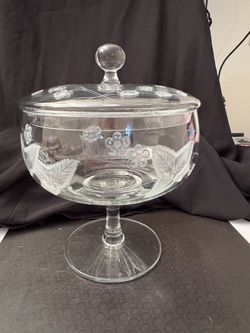 Vintage Etched Glass Footed Candy Dish with Lid$35Branford, CT