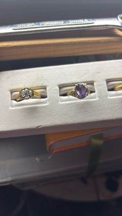 Multiple Rings In 14 K Bands. Amerhyst Diamond Garnet Emerald And Garnet$500San Francisco, CA