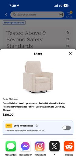 Delta Children Noah Upholstered Swivel Glider with Stain-Resistant Performance Fabric- Greenguard Go$200Bossier City, LA