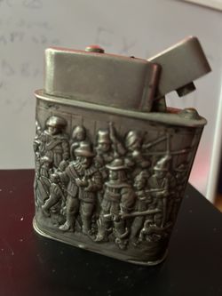 Es un encendedor de mesa vintage con repujado de plata. Presenta una escena en relieve, que a menudo representa la pintura de REMBRANDT De Mesa $300Ind Crk Vlg, FL