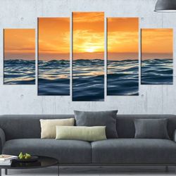 Designart / Blue Waves Dancing at Yellow Sunset - 5 Panel - Canvas Wall Art$25Flushing, MI