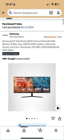 Samsung 34” Monitor Avalible at the end of April$150Pasadena, CA