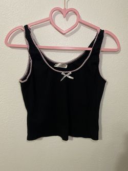 Black tank top with white lace trim and bow detail $3Phoenix, AZ