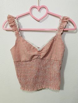 Pink gingham crop top with lace trim SIZE M$3Phoenix, AZ